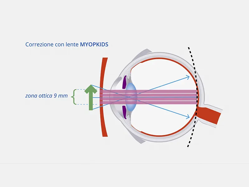 MyopKids è il brevetto internazionale Ital-Lenti che controlla la progressione del difetto refrattivo e limita l’allungamento assiale del bulbo oculare attraverso un meccanismo innovativo: il defocus ottico progressivo radiale. Per una visione fisiologica e funzionale, a misura di bambino.